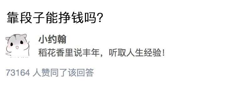说到底,他是一位普通的政治系大二学生,他缺钱。在聚居着大量青年的知乎,不乏广告主的存在,某个牌子的化妆品如何?天猫上有什么好吃的零食?答主回答某个问题收获赞能卖钱,收获粉丝能卖钱,知乎上各类软广、硬广手段纷繁。甲方乙方,一个出钱,一个卖才华,发财致富的道路就在眼前,小约翰却至今没成就一单生意。